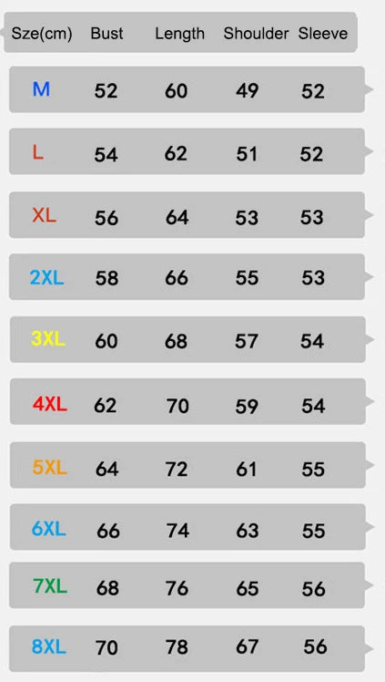Size: 4XL [85-95KG]/5XL [95-105KG]/6XL [105-115KG]/7XL [115-125KG]/8XL [125-135kg]/M/L/XL/2XL/3XL;