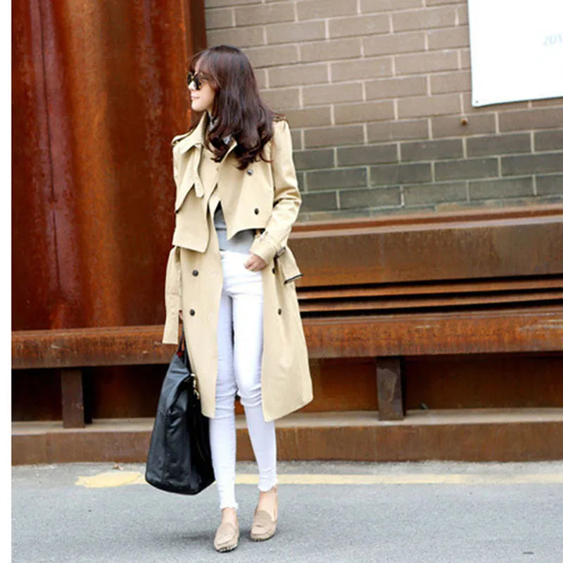Big Discount Novelty Fashion Women lapel Long Trench Coat Women With 3ways to wear, Long Sleeve British Style Windbreaker