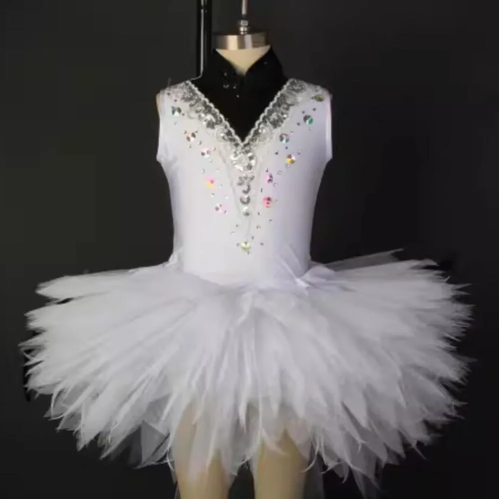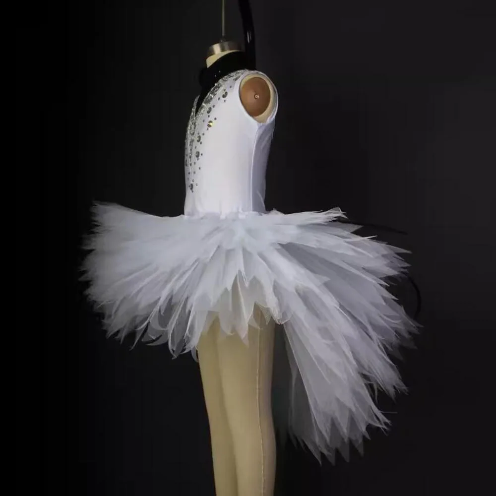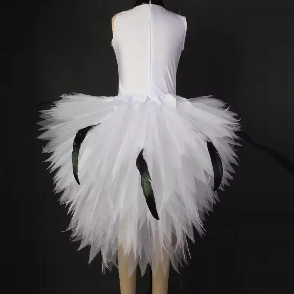 Children's White Bird Ballet Skirt With Short Front And Long Back Hem