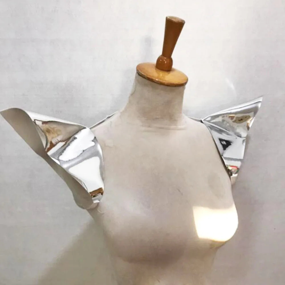 Customized Runway Show Nightclub Bar Party Attire, Super Bright Patent Leather Shoulder Accessories, Flying Shoulder Camisole