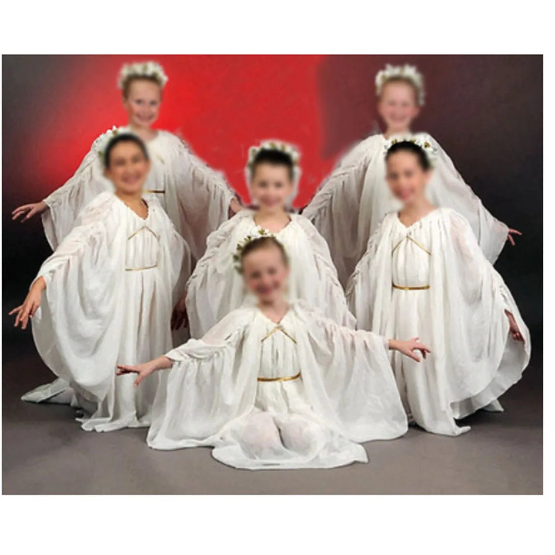 Girl Big Sleeve And Skirt Angel White Ballet Dress Long Costumes With Golden Trims,Custom Made Balet Dress For Performance