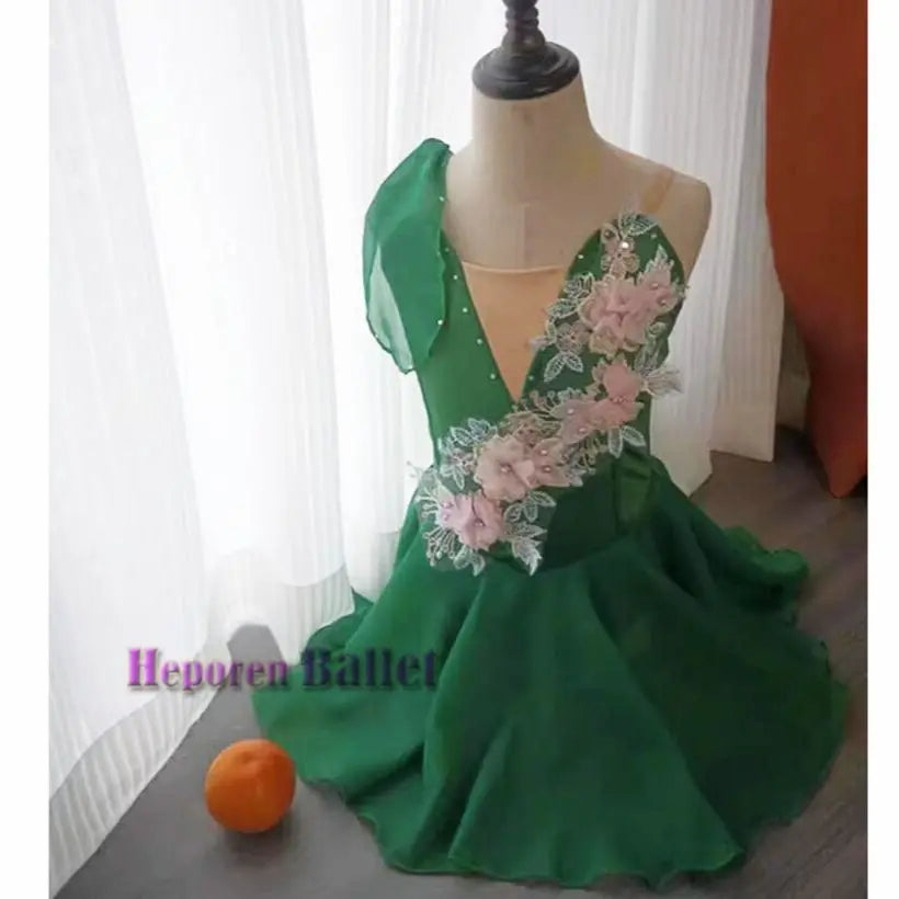 Girl Simple Chiffon Cupid Ballet Short Dress With Flower Decoration For Practice, Summer Elegant Modern Dance Skirt