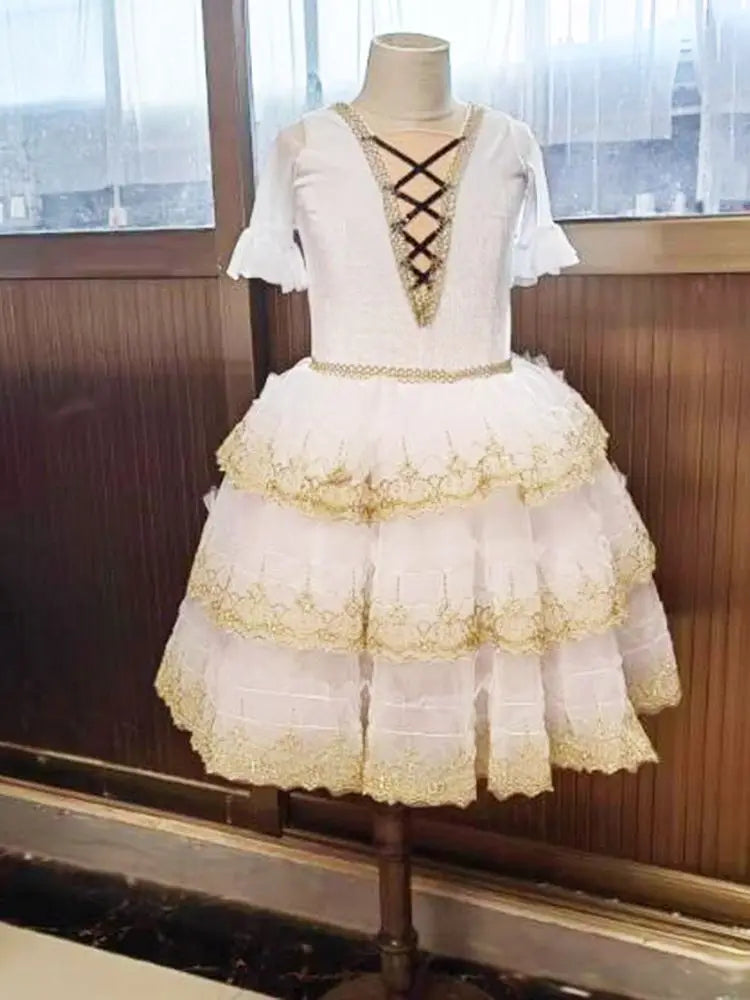Girls Spanish Ballet Dress Quixote Performance Stage Costume White Gold Balet Skirt Drop Shipping