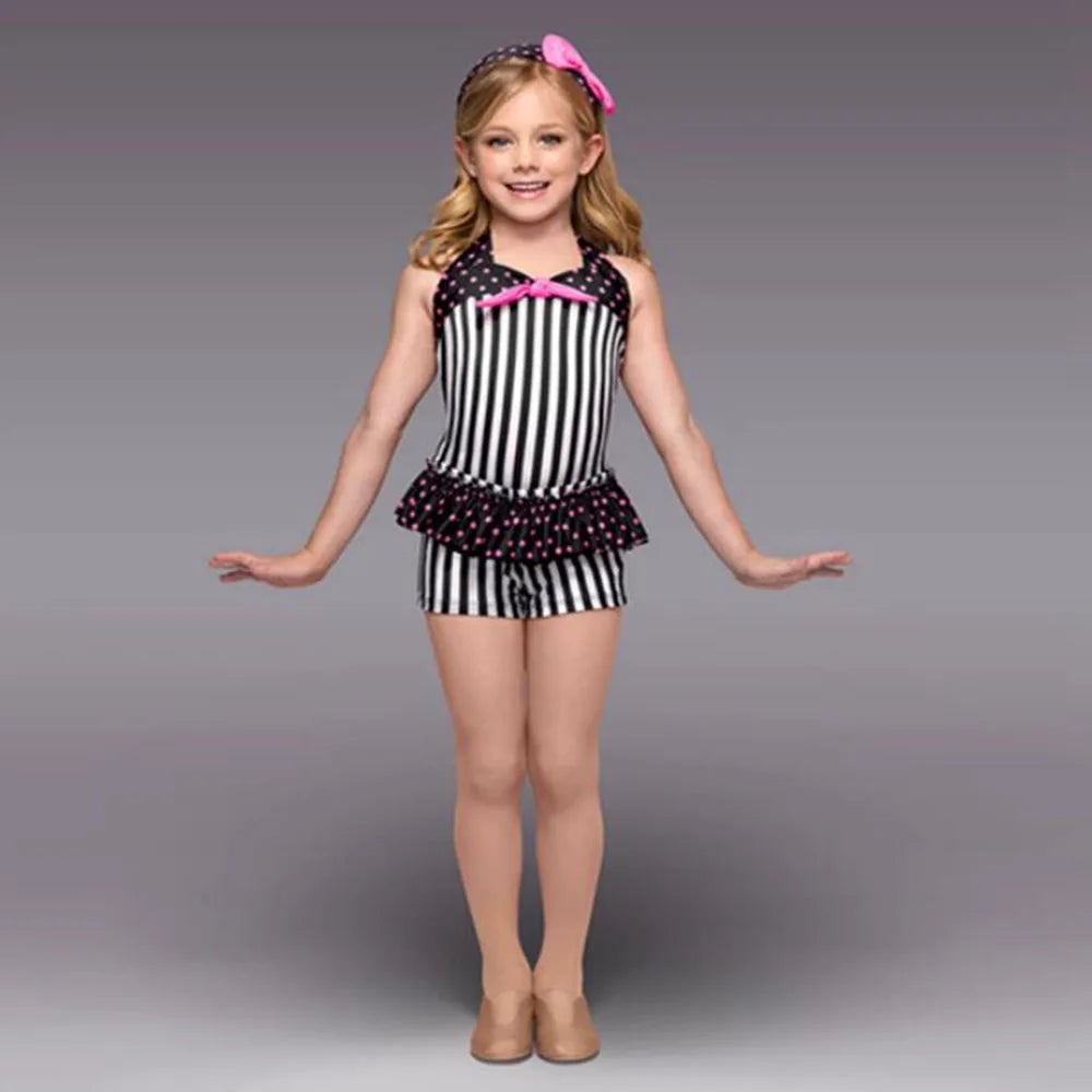 Little Girls' Ballet Dress Striped Dance Tutu Set,Jazz Dress For Stage Performance Modern Dance Skirt
