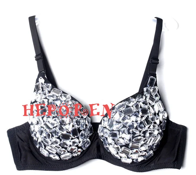 Women Handmade Diamond Brassiere Night Club Crystal Bras Bikini Ballroom Dancing Bras, Female Sexy Silver Sparkling Diamond Bra